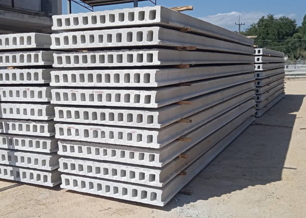 ในส่วนของแผ่นพื้นคอนกรีตแบบกลวง หรือเรียกกันอีกแบบว่าแผ่นพื้นฮอลโล่คอร์ เป็นแผ่นพื้นมีรูกลวงตรงกลางแผ่น ทำให้แผ่นพื้นมีน้ำหนักเบาขณะที่มีความแข็งแรงเป็นอย่างมาก ใช้งานได้หลากหลาย ตั้งแต่ก่อสร้างอาคารทั่วไป ไปจนถึงอาคารขนาดใหญ่ เช่นอาคารที่อยู่อาศัย ห้างสรรพสินค้า และโรงงานอุตสาหกรรม มีความหนาและหน้ากว้างให้เลือกหลายขนาด สามารถสั่งผลิตยาวสุดได้ถึง 11 เมตร