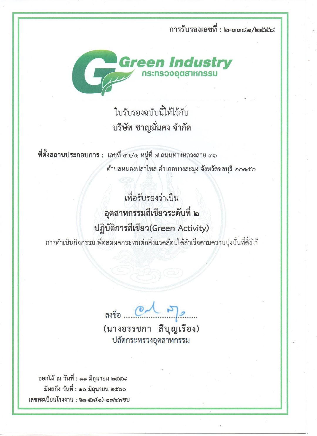 ซีเอ็มเค คอนกรีต ร่วมเป็นส่วนหนึ่งในการสนับสนุนอุตสาหกรรมโรงงานสีเขียวในประเทศไทยโดยเราได้ผ่านการรับรองอุตสาหกรรมสีเขียวในระดับที่ 2 (ปฏิบัติการสีเขียว) เป็นที่เรียบร้อยแล้ว